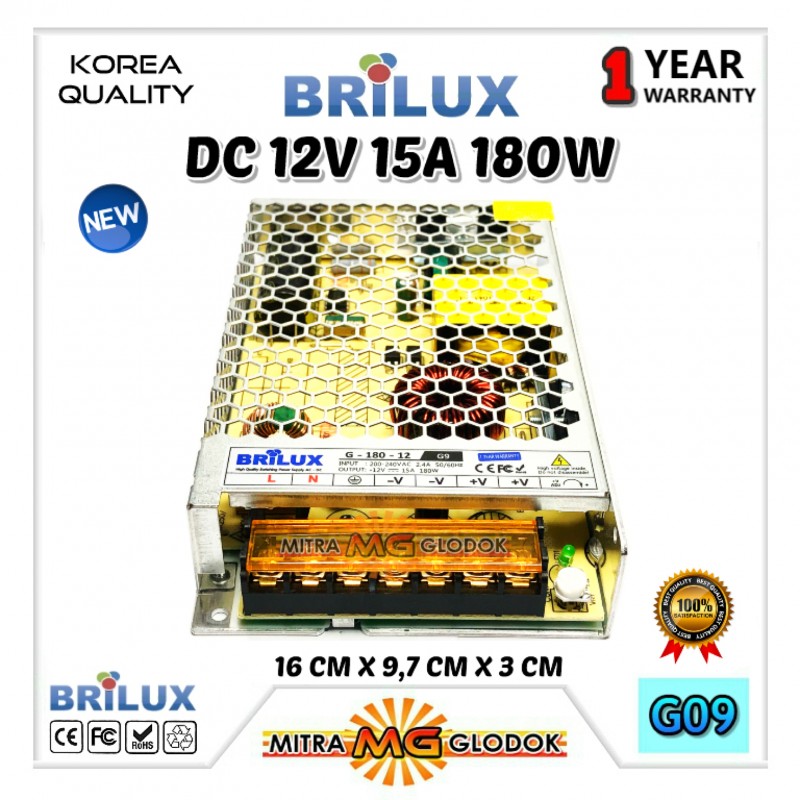 Power Supply Trafo Brilux DC 12V 15A | 180W (Super Quality)