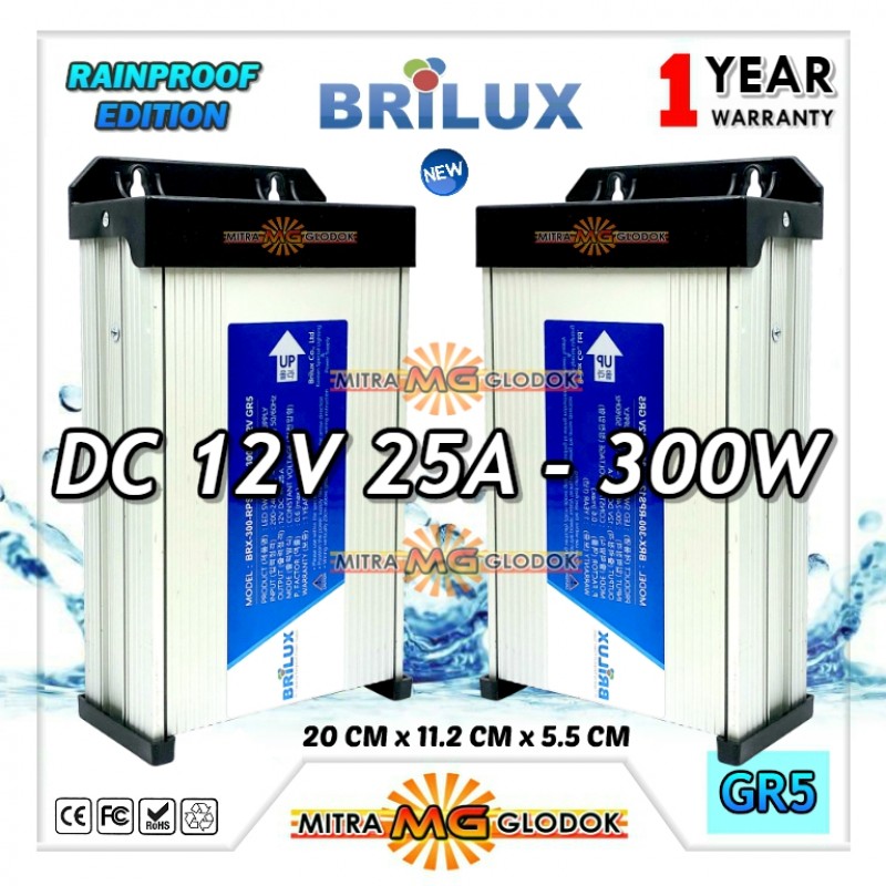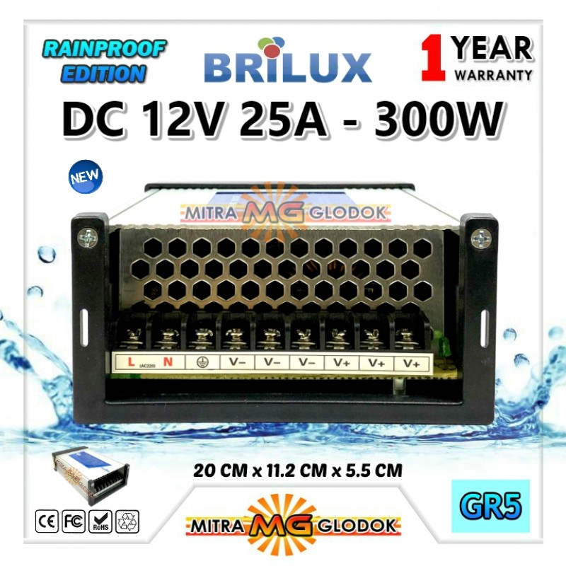 Power Supply Trafo Brilux DC 12V 25A | 300W (Waterproof)