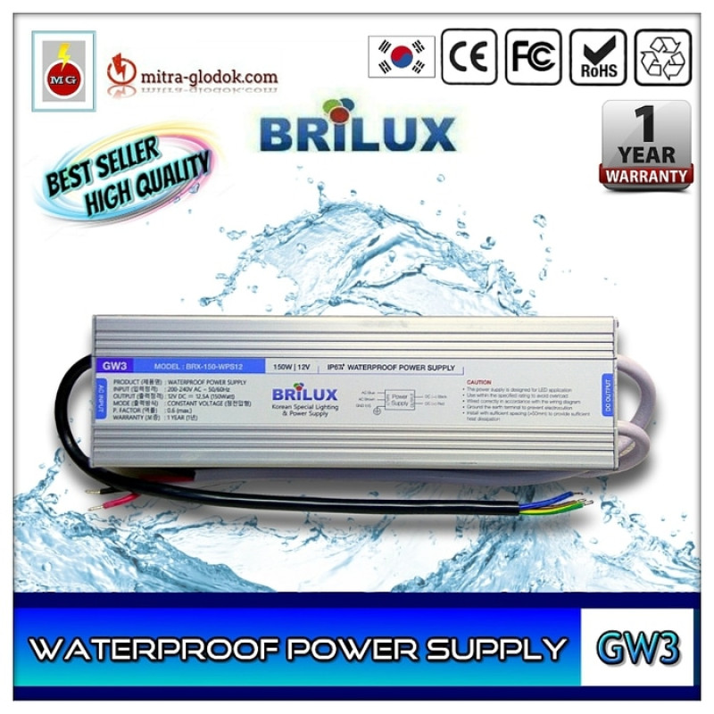 Power Supply Trafo Brilux DC 12V 12.5A | 150W (Waterproof)