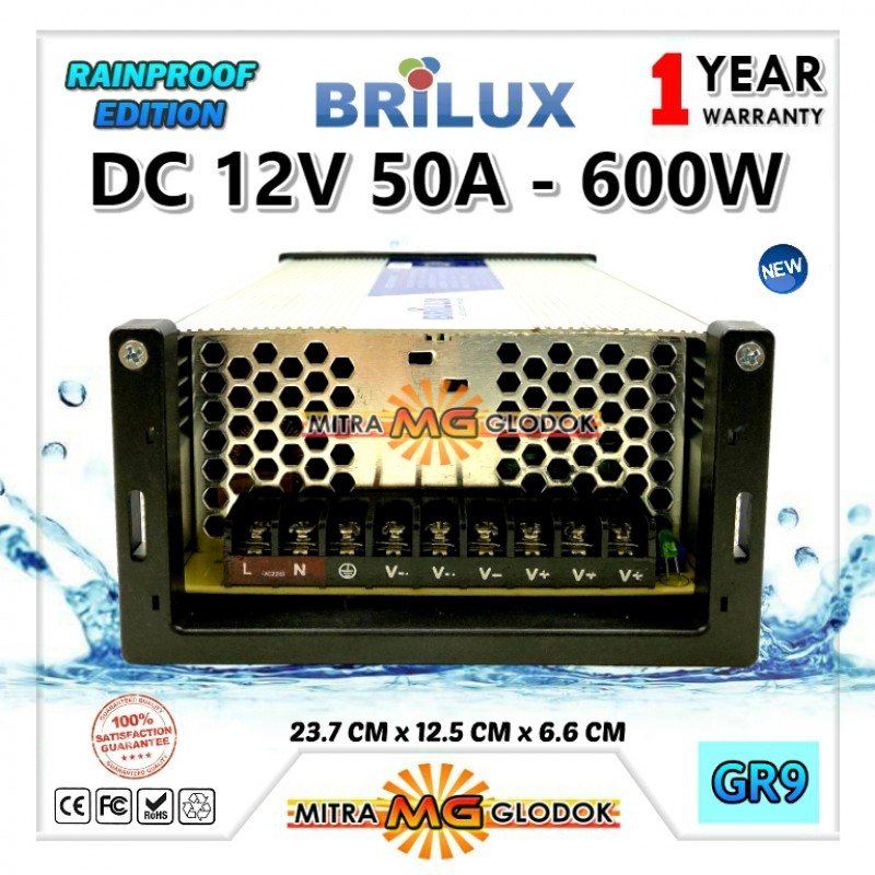 Power Supply Trafo Brilux DC 12V 50A | 600W (Super Quality) - Rainproof