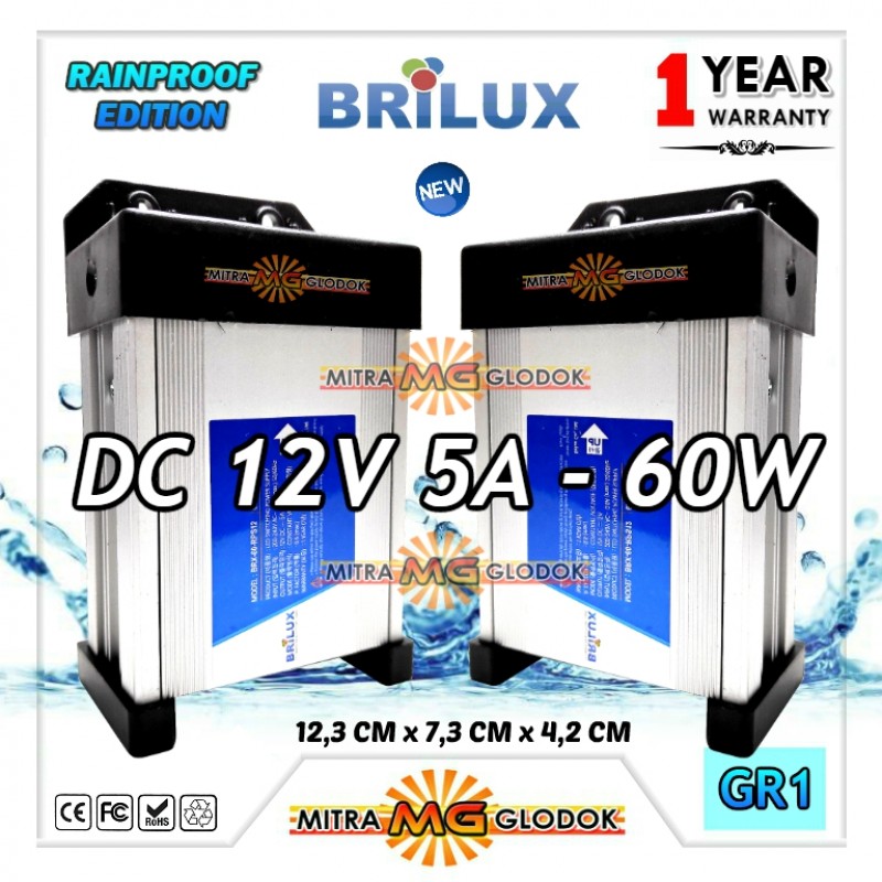 Power Supply Trafo Brilux DC 12V 5A | 60W (Super Quality) - Rainproof