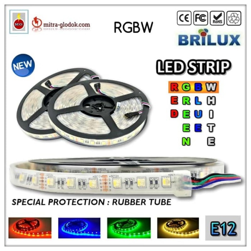 LED Strip Flexible Standar SMD 5050 Merk Brilux IP68 / IP66 ( Bukan IP65 ) dengan kualitas cahaya stabil dan harga Bersaing digunakan untuk Aksen Cafe, Pub, dan rumah Anda, dapat diganti dengan Remote