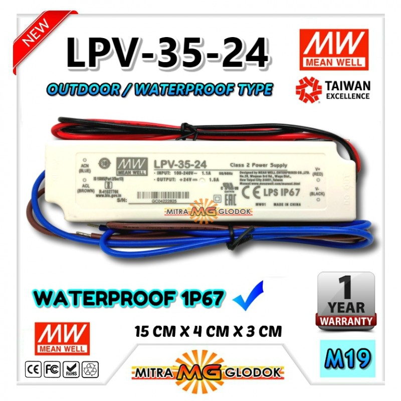 Power Supply Trafo Meanwell LPV-35-24 DC 24V 1.5A 35W | Mean Well (Waterproof)