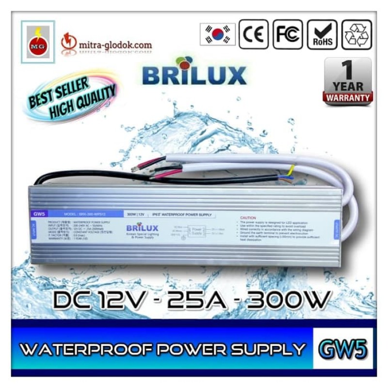 Power Supply Trafo Brilux DC 12V 25A | 300W (Waterproof)