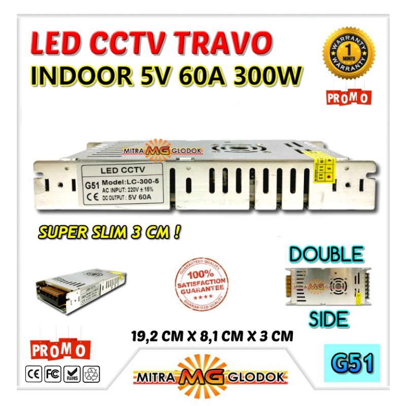 Power Supply Trafo Promo Indoor DC 5V 60A 300W | SLIM + FAN