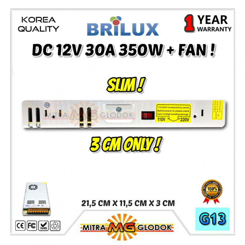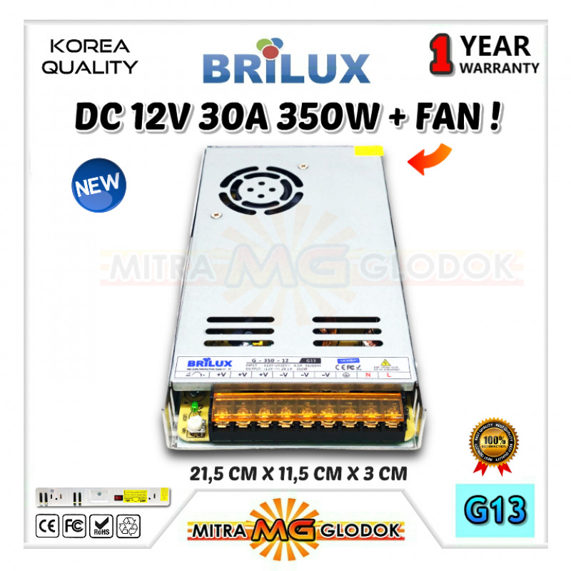 Power Supply Trafo Brilux DC 12V 30A | 350W + Fan (Super Quality)
