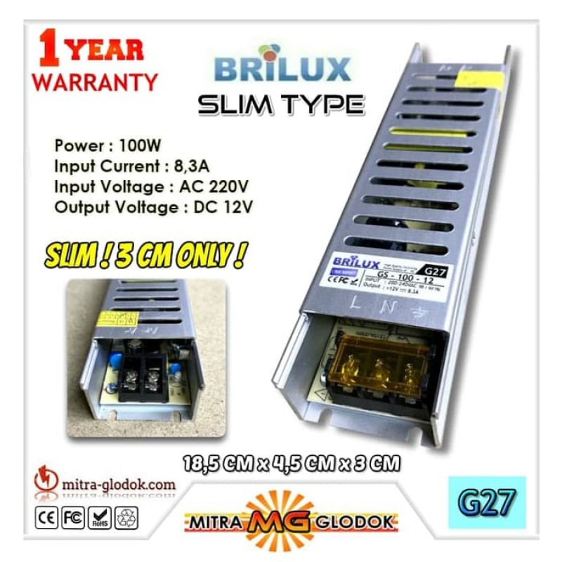 Power Supply Trafo Brilux DC 12V 8.3A | 100W + Slim (Super Quality)