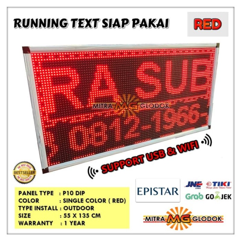 Running Text Murah Jakarta Merah Satu Warna Single Color Koneksi WIFI & USB SPESIFIKASIKode..